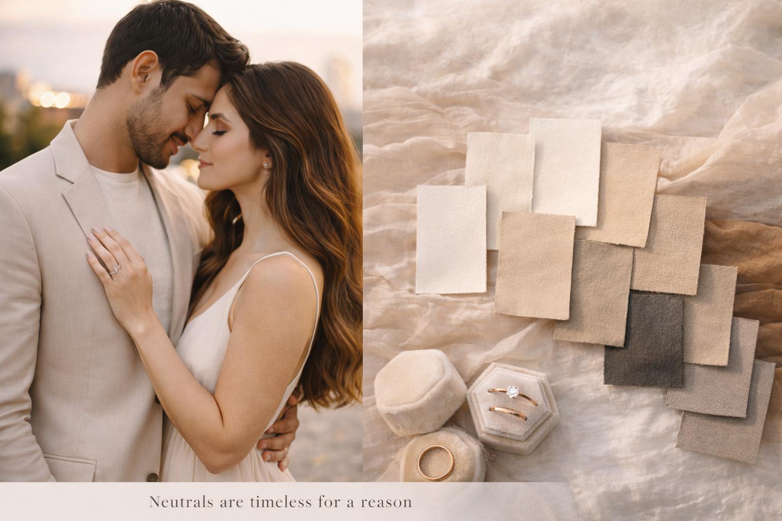 Neutrals photograph cleanly, flatter most skin tones, and never overpower emotion.